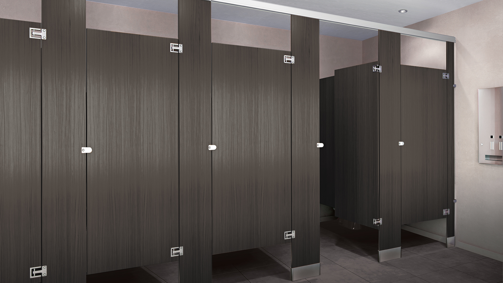 When used together with wall-hung fixtures, the entire floor is accessible for efficient cleaning. Structural steel ceiling supports are necessary to assure proper installation.